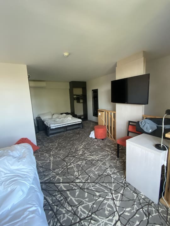 ZimmerDas Ausziehsofa hat gequischt und die Matratze war schon sehr durchgelegen. Man hatte Angst sich zu bewegen weil es so gequischt hat.