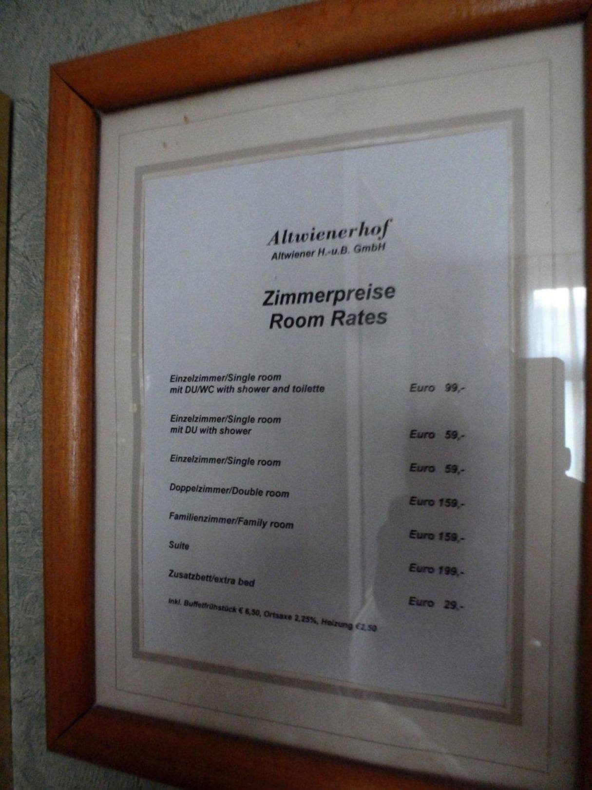 Altwienerhof, Preisliste 2015