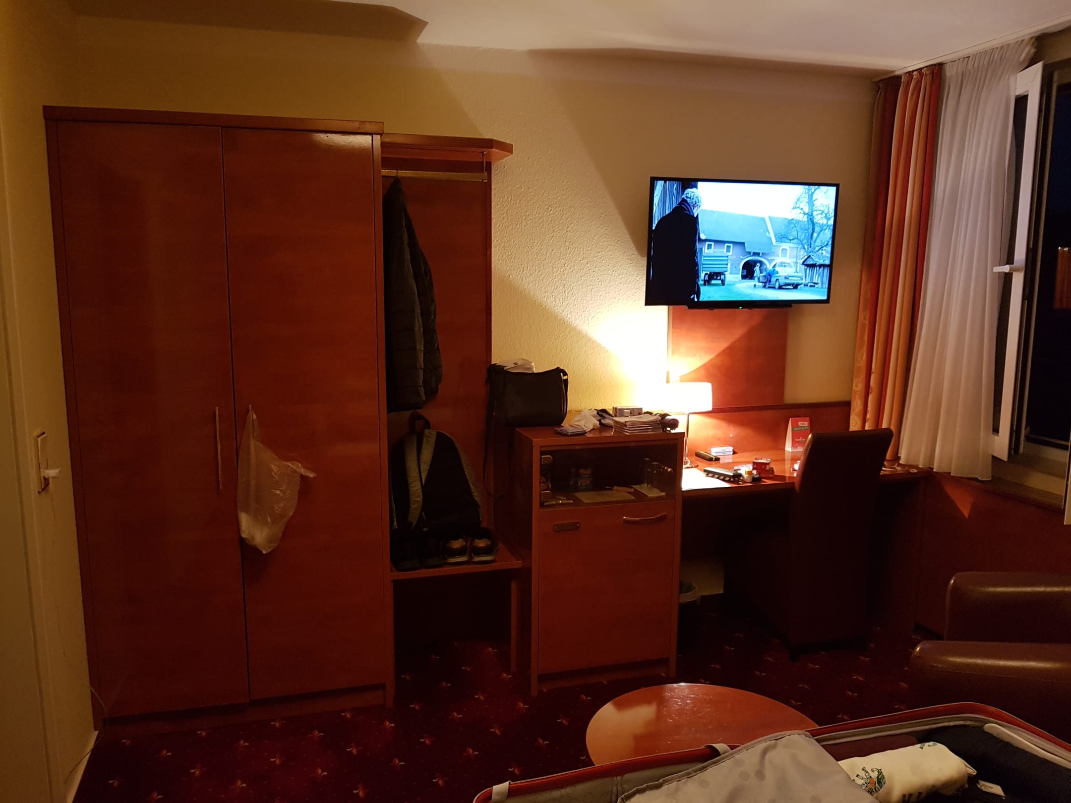 Ansicht mit Kleiderschrank und Ablage
