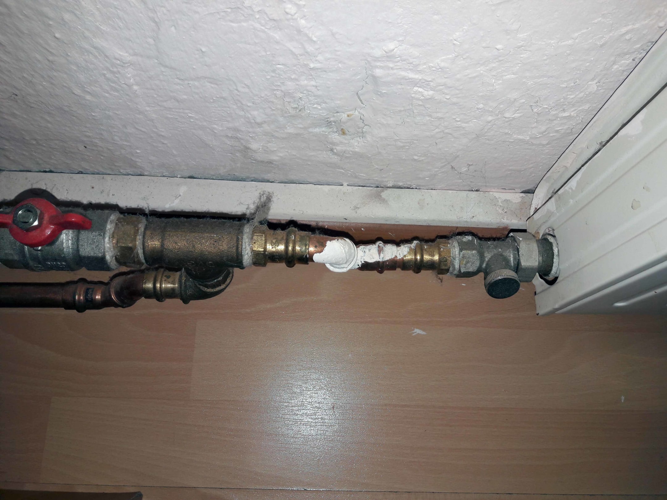 neue Heizungsrohre verlegt, nicht verkleidet, geputzt wurde hier länger nicht mehr.