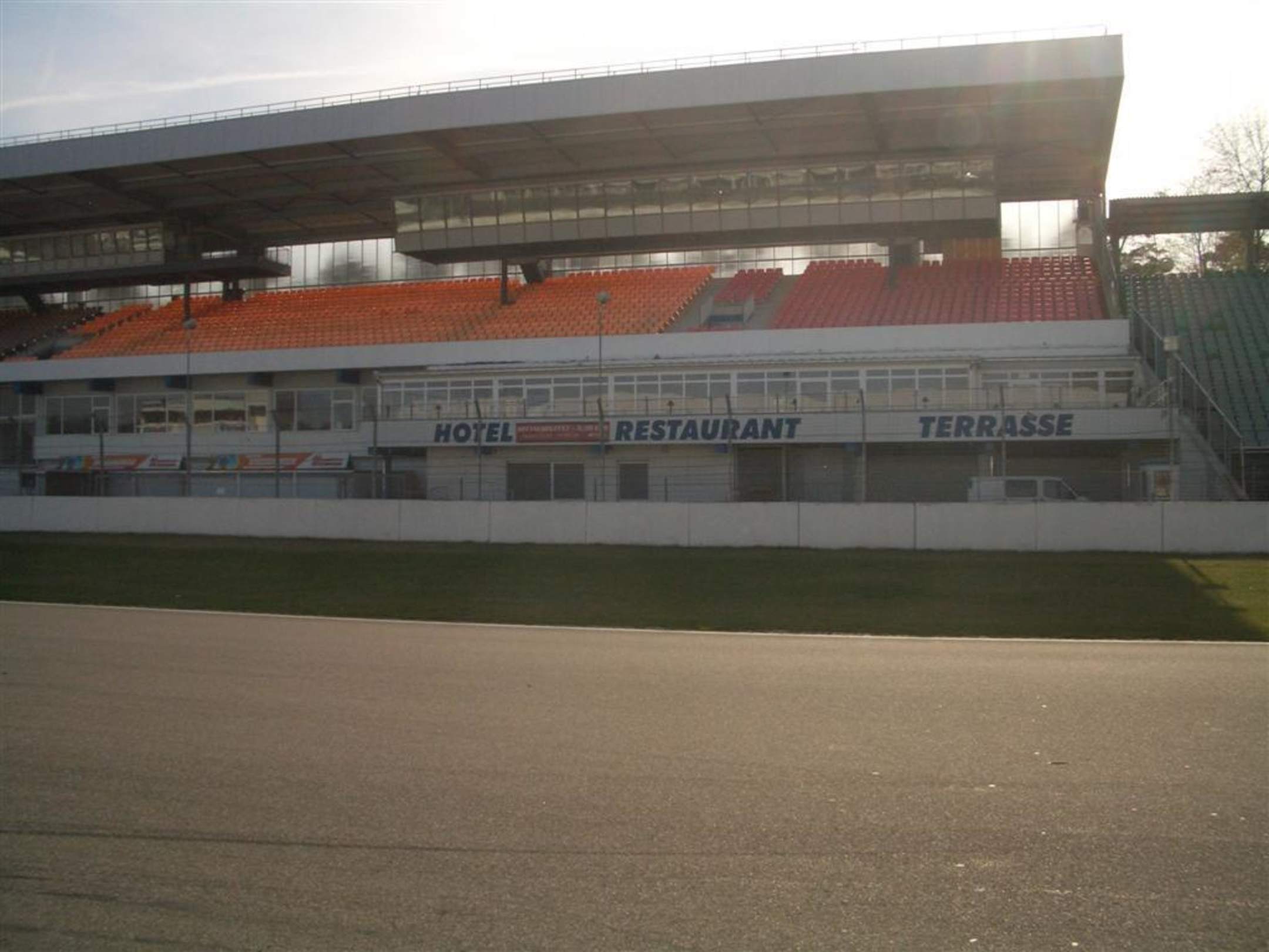 Get the sound! Having breakfast while others are doing their practise. Hotel Motodroms "backview, which is in fact a first class view to the racetrack along the starting grid and the pitlane.