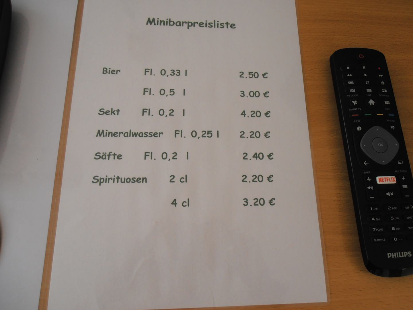 Preise der Minibar, immer noch recht günstig