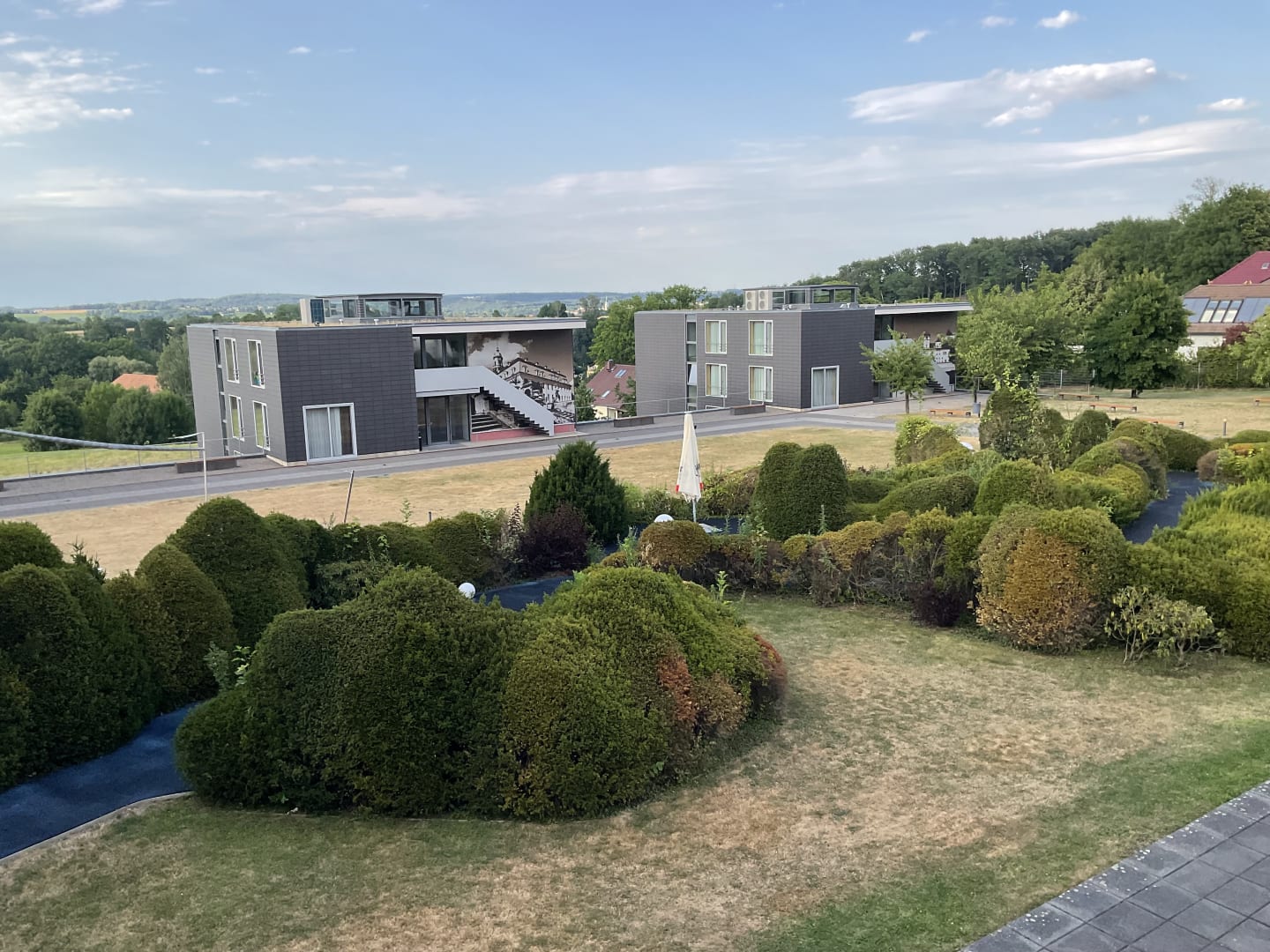 Blick auf die Nebenhäuser und den Garten
