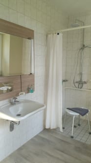 Das geräumige Bad mit Dusche und Wanne.