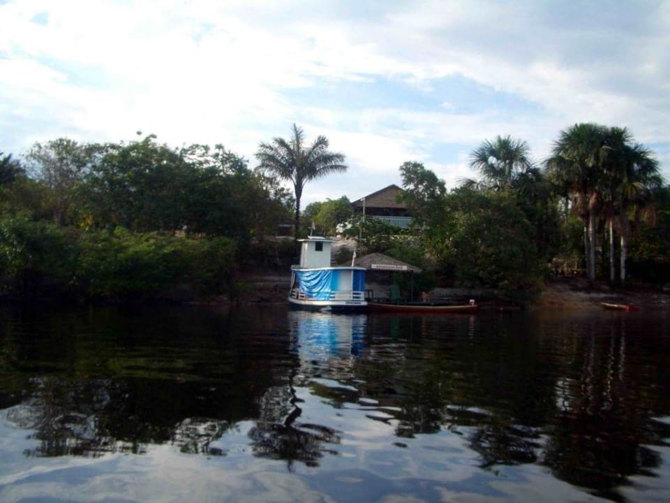 Amazoclub Seeufer mit Blick auf RestaurantBlick vom Idasee des Urubuflusses auf das Restaurant des Amazonclubs.