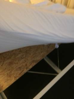 Das Bett ist durchgelegen und unbequem. Zudem viele Flecken auf dem Lacken.