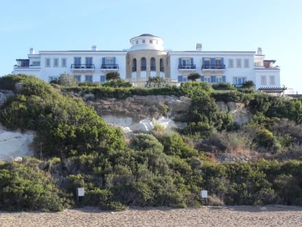 Blick vom Strand auf das Hotel