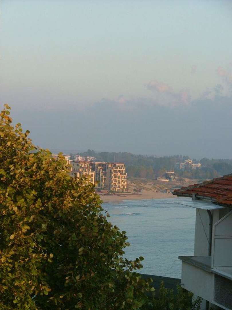 Blick vom Hotel Andonov auf Meer und Strand