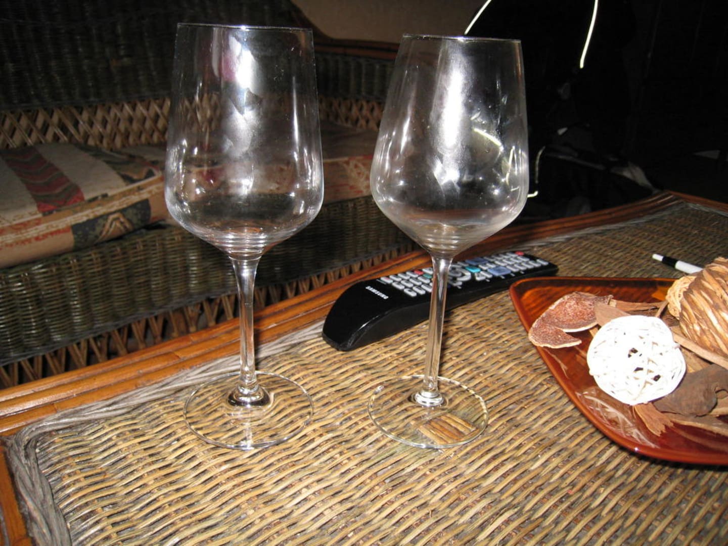 Weingläserauf jedes Detail wird im Weinhotel wert gelegt. 2 Ungleiche Gläser für einen warmen Weißwein!