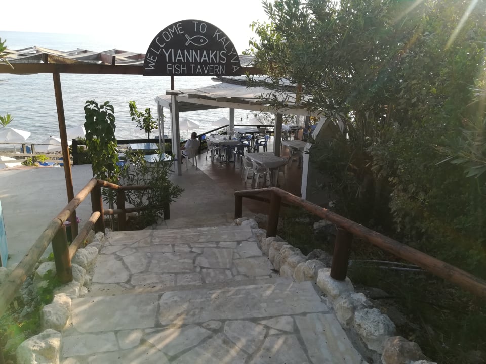 GastroFischtaverne direkt vorm Hotel (am Strand), leider wenn die frische Fische ausgehen, machen die schon um 15:00 zu