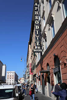 Das Hotel liegt unmittelbar neben dem Hauptbahnhof Termini und ist recht unscheinbar.