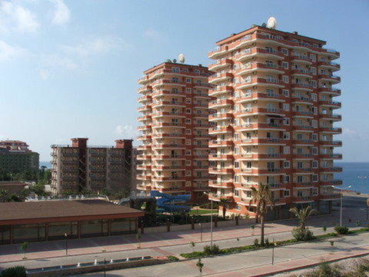 Widok z pokoju na apartamentowiec