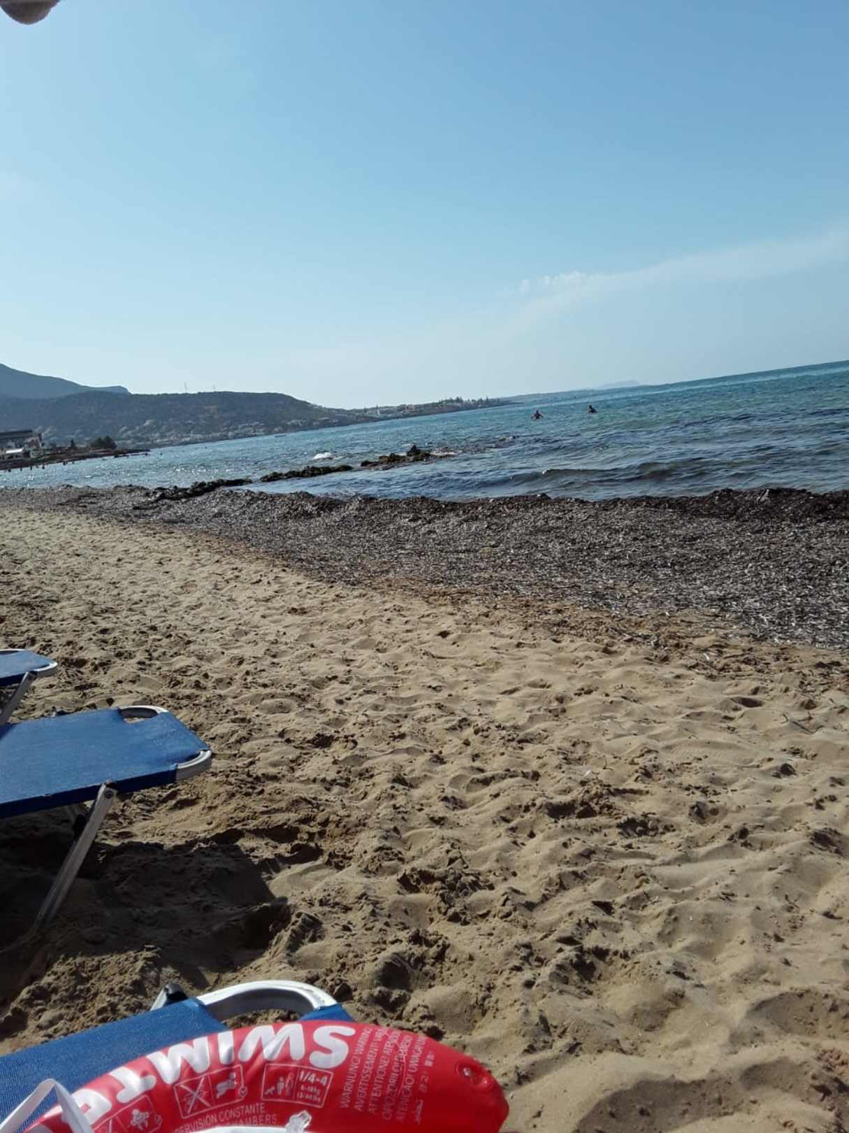 StrandAussicht am Strand nach links. Die Menge an Algen war ungewöhnlich, aber nach ein paar Tagen wieder weggespült.