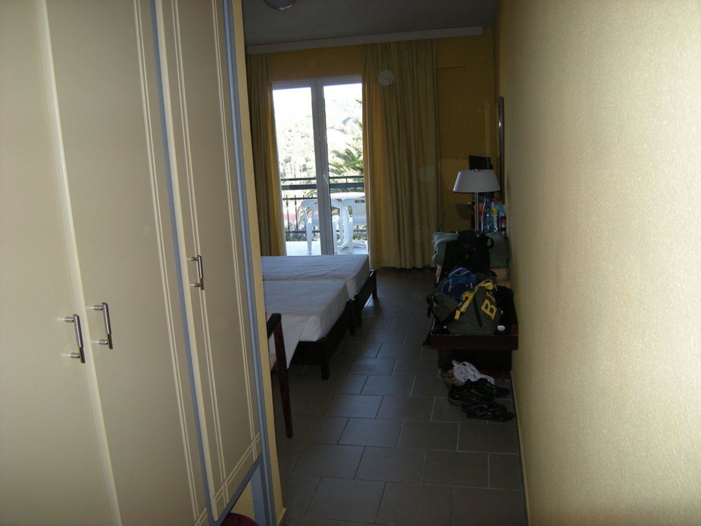 Kleiderschrank und Blick durchs Zimmer