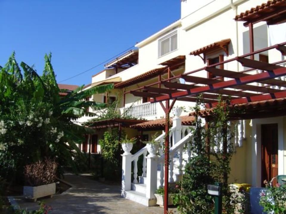 In der kleinen Gartenanlage des Hotel Athena Beach (auf Samos - in Kokkari) kann man sich durchaus wohlfühlen, etliche Bananenstauden sorgen für ausreichend Grün. Das Gelände ist gepflegt.