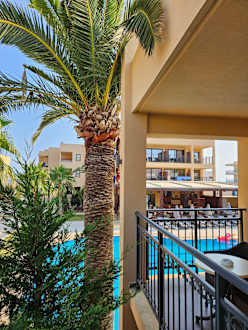 Zimmer mit (seitlichem) Poolblick