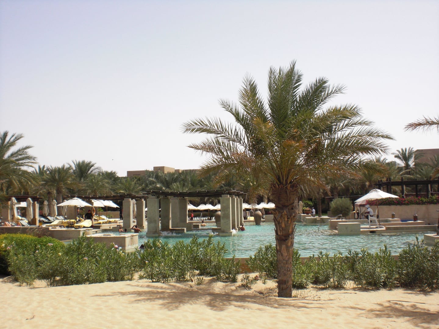 Blick auf den Pool von der Wüste