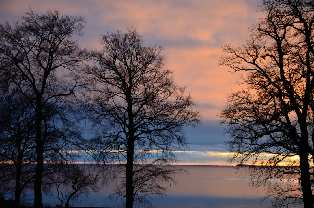 Blick aus dem Fenster auf den Bodden b. Sonnenunt.