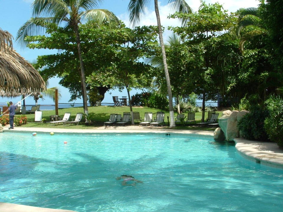 Blick über den Pool zum Meer