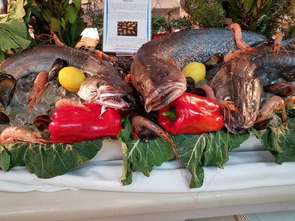 Dekoration der Fischbratstation, wo ständig frisch gebraten wurde.