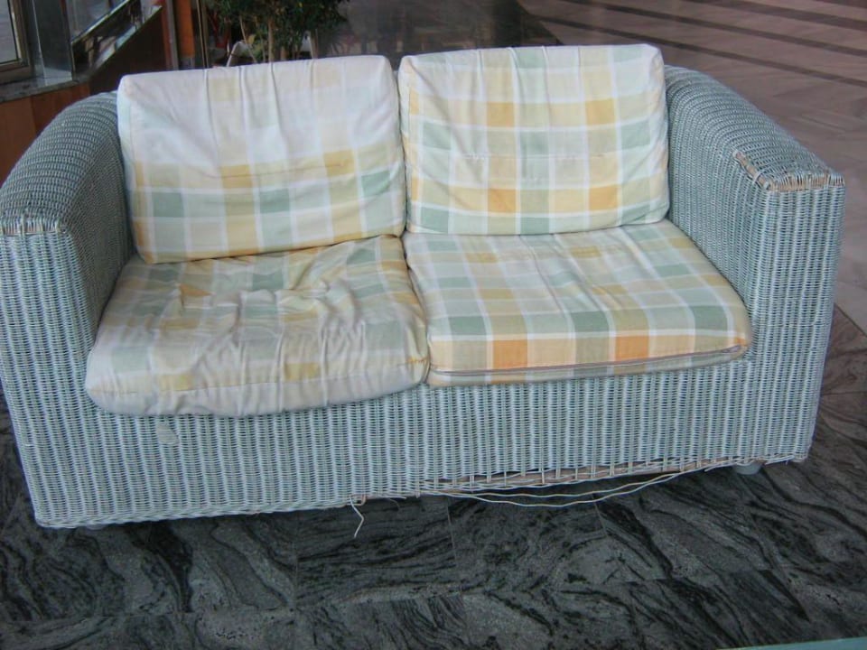 Hier ist ein "Sofa" mit Sperrmüll-Qualität zu sehen, das in der Lobby des Hotels Bahina Serena, Roquetas de Mar stand. Sämtliche anderen Sitzmöbel sahen mindestens genau so schlimm aus.