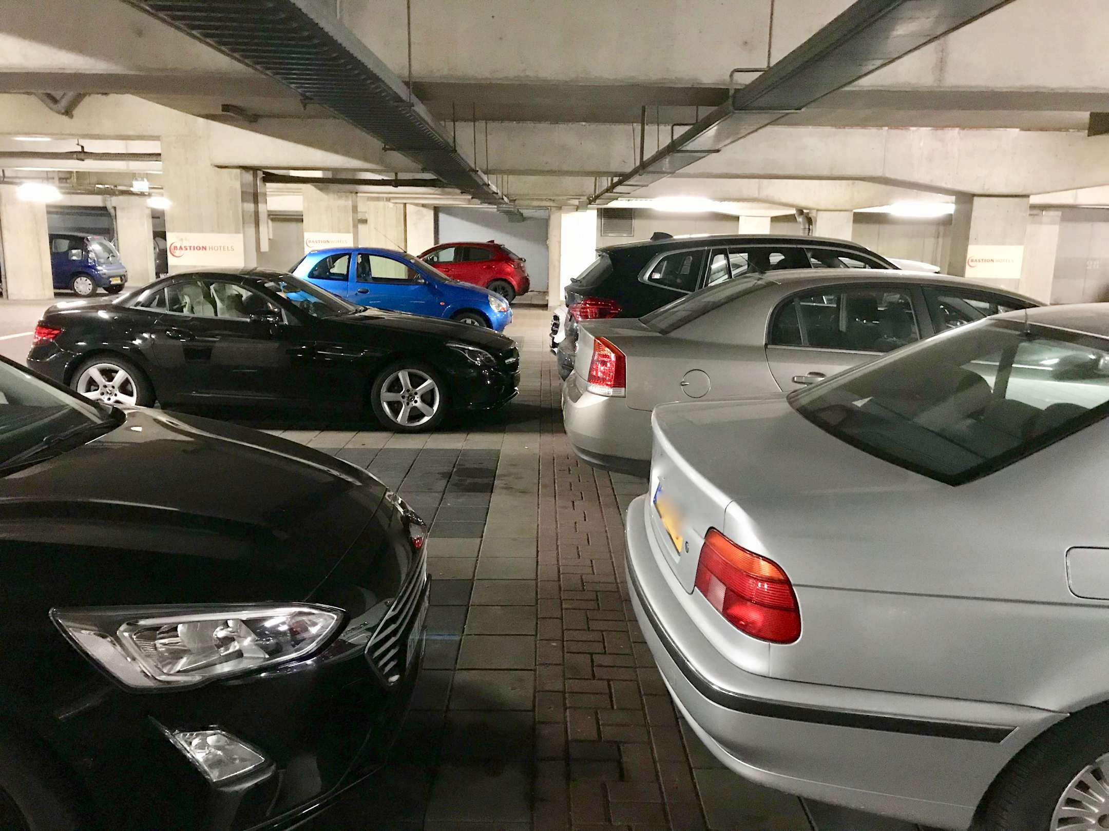 Tiefgarage, öffentlich und für Bewohner. Reservierte, markierte Plätze für Bastion-Gäste