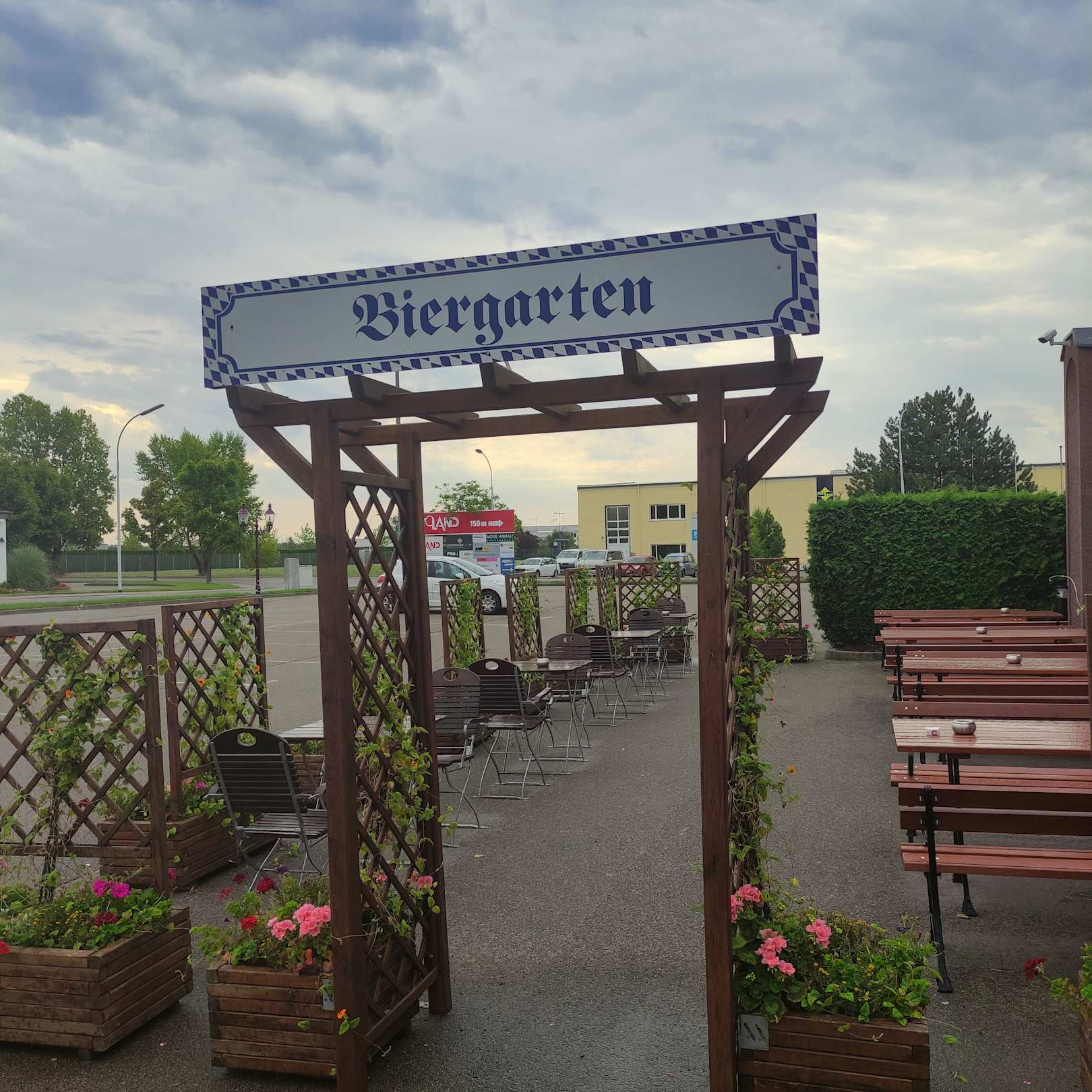 Der Biergarten im Außenbereich neben dem Eingang
