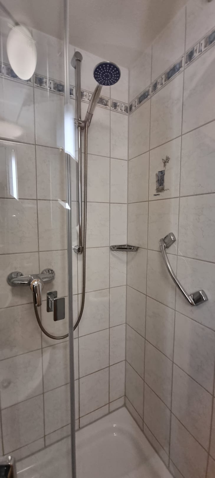 Die Dusche für große Personen hmm ? Türe geht wegen der Decke nicht ganz auf