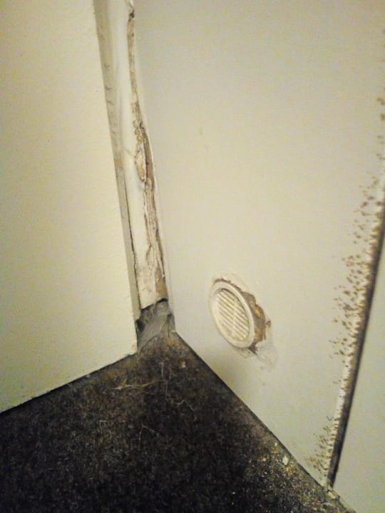 Dreckige fefekte Wandvertäfelung, Spinnweben in allen Ecken