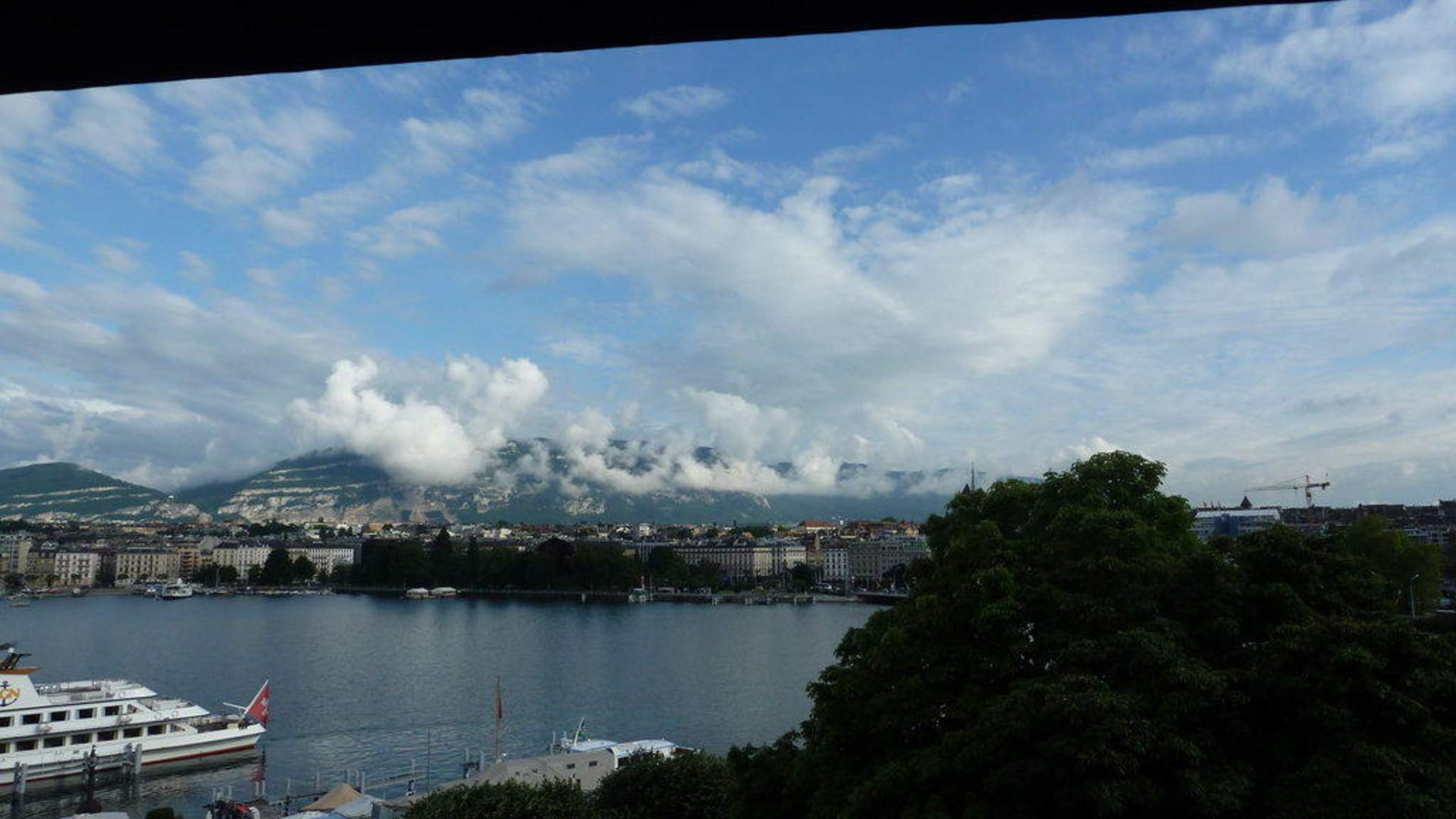 Blick au dem Fenster zum Genfer See hin