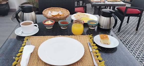 Frühstück auf der Dachterasse.