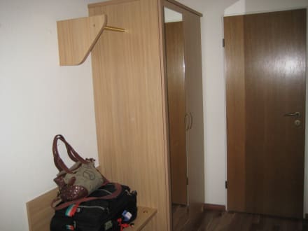 Im Schrank - Bügel. Links daneben - Ganzkörperspiegel.