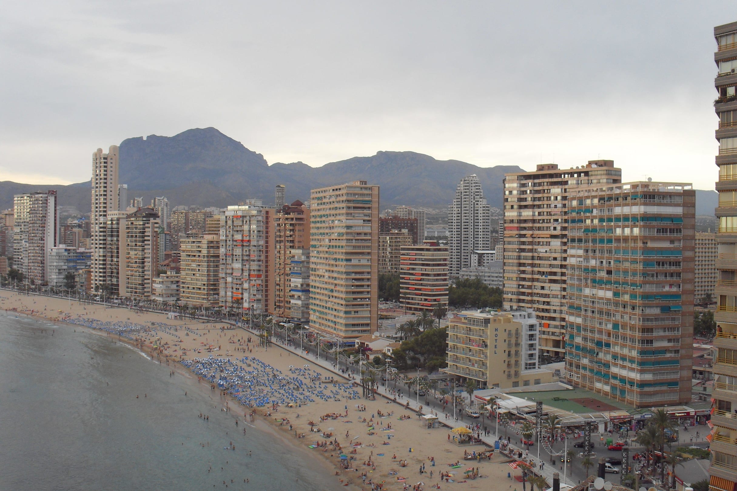 Вид с балкона отеля на город Бенидорм и пляж.