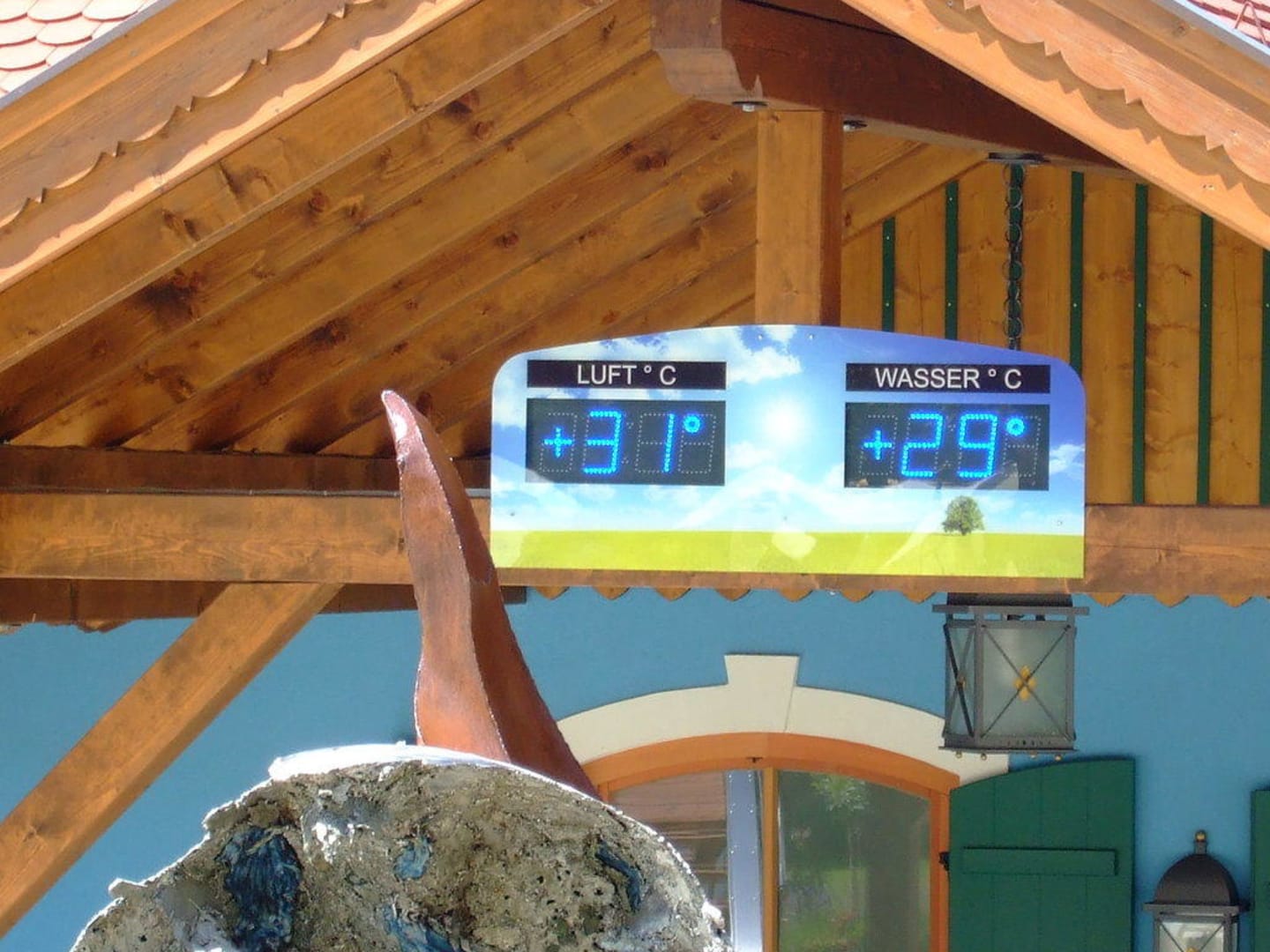 Badehaus mit Außen-und Wassertemperatur