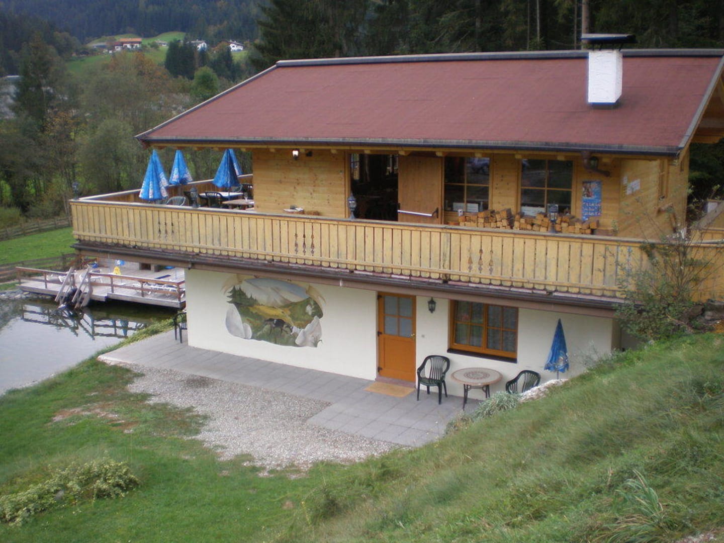 Hütte mit Teich