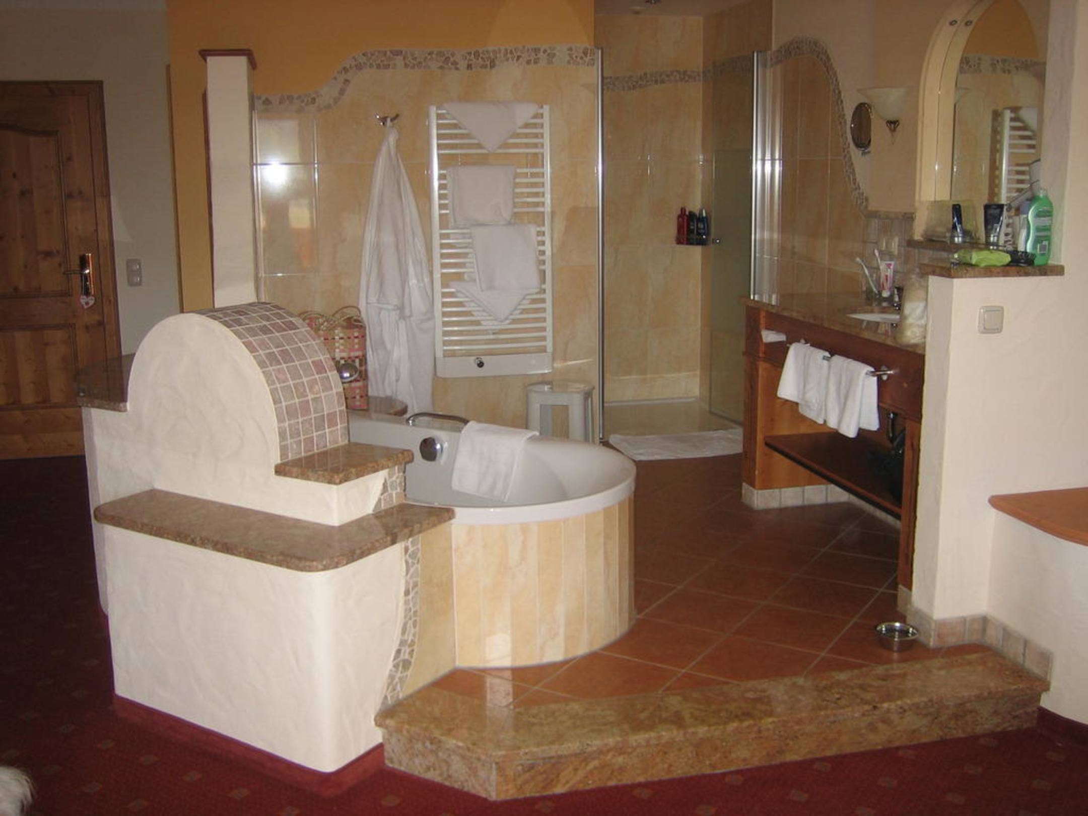 Das Bild zeigt das offene, tolle Badezimmer in der "Kristallsuite".