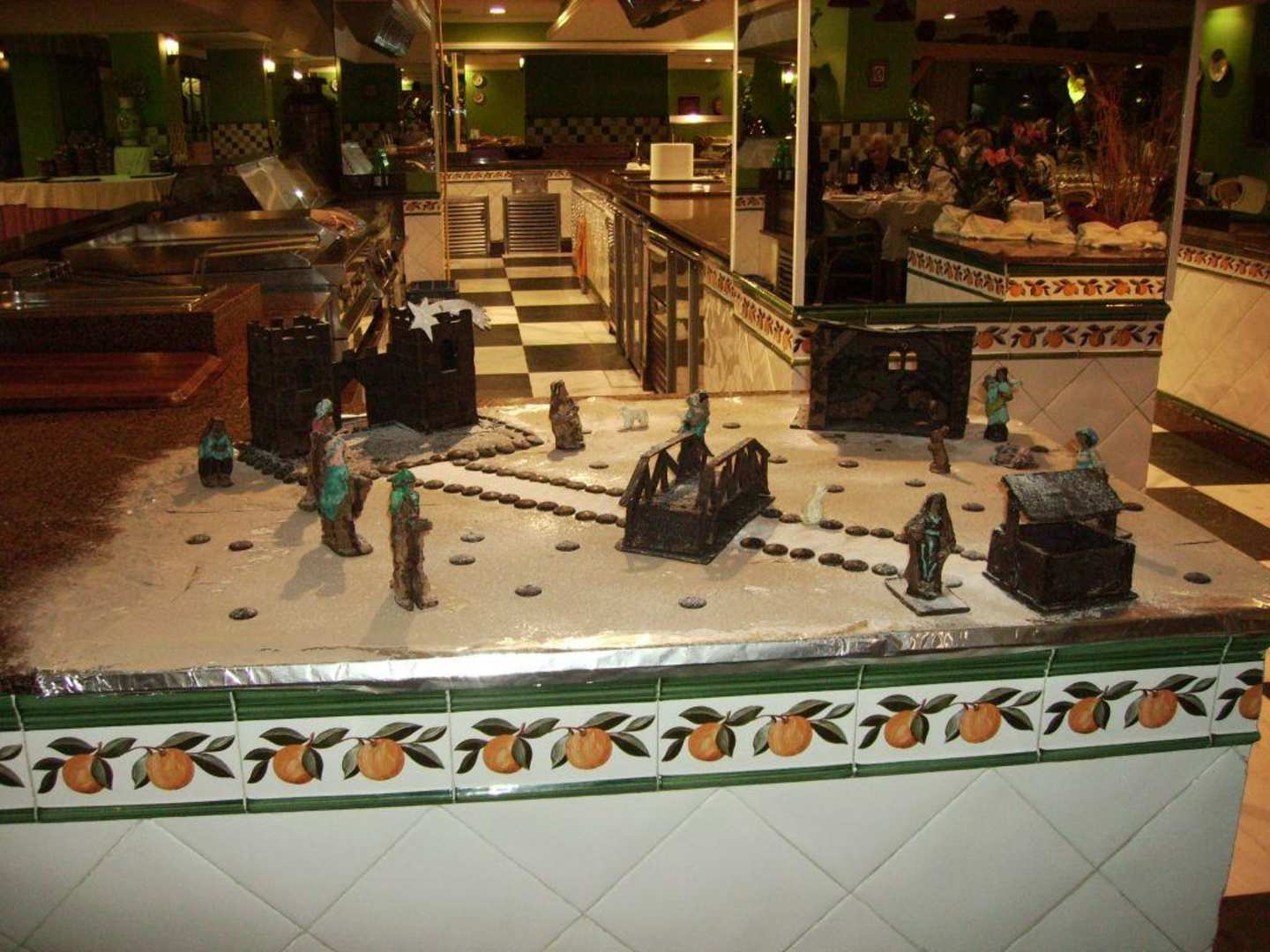 Heiligabend im Restaurant des Hotel Playaluna. Die Krippe ist komplett aus Schokolade!