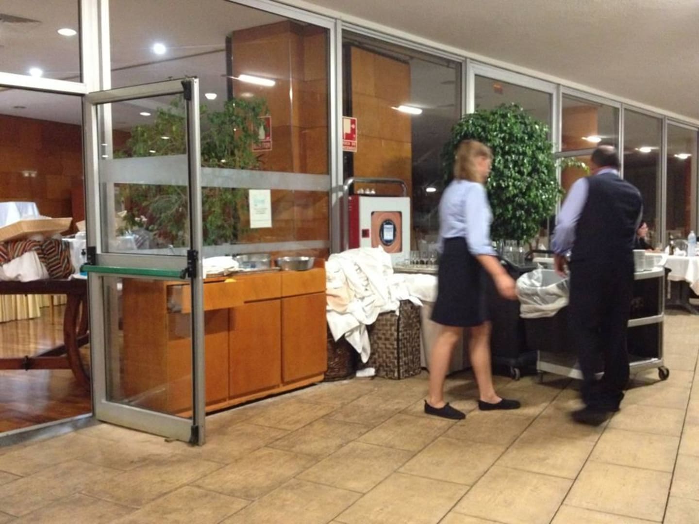 Terrasse beim AbendbrotDie Tischdecken wurden beim Abendessen gewechselt und die schmutzigen Tischdecken direkt neben den Tischen abgelegt