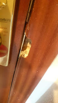 Zerstörte Türzarge/-schloss.