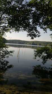 Blick vom See am Ufer von Boltenmühle