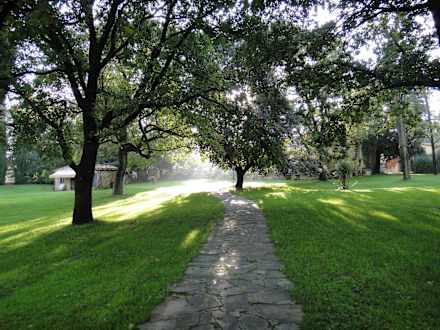 Weg vom Pool zu den Hauptgebäuden