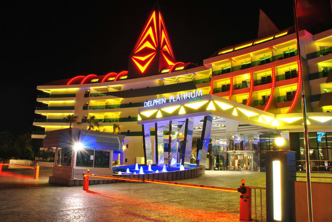 Hier mal eine Nachtaufnahme der Frontansicht des Hotels