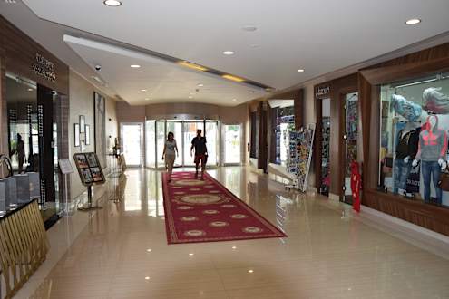 Untergeschoss - Shops und Weg zum Garten