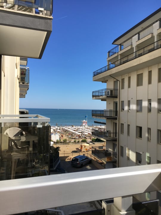 Blick vom Balkon: seitlicher Meerblick