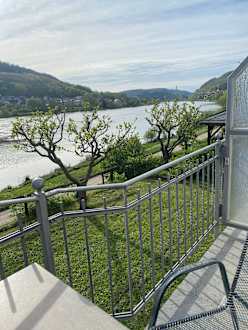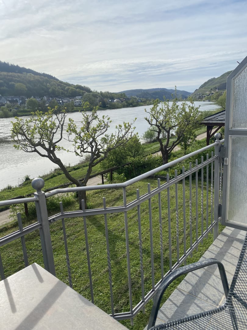Blick von unserem Zimmerbalkon auf die Mosel.