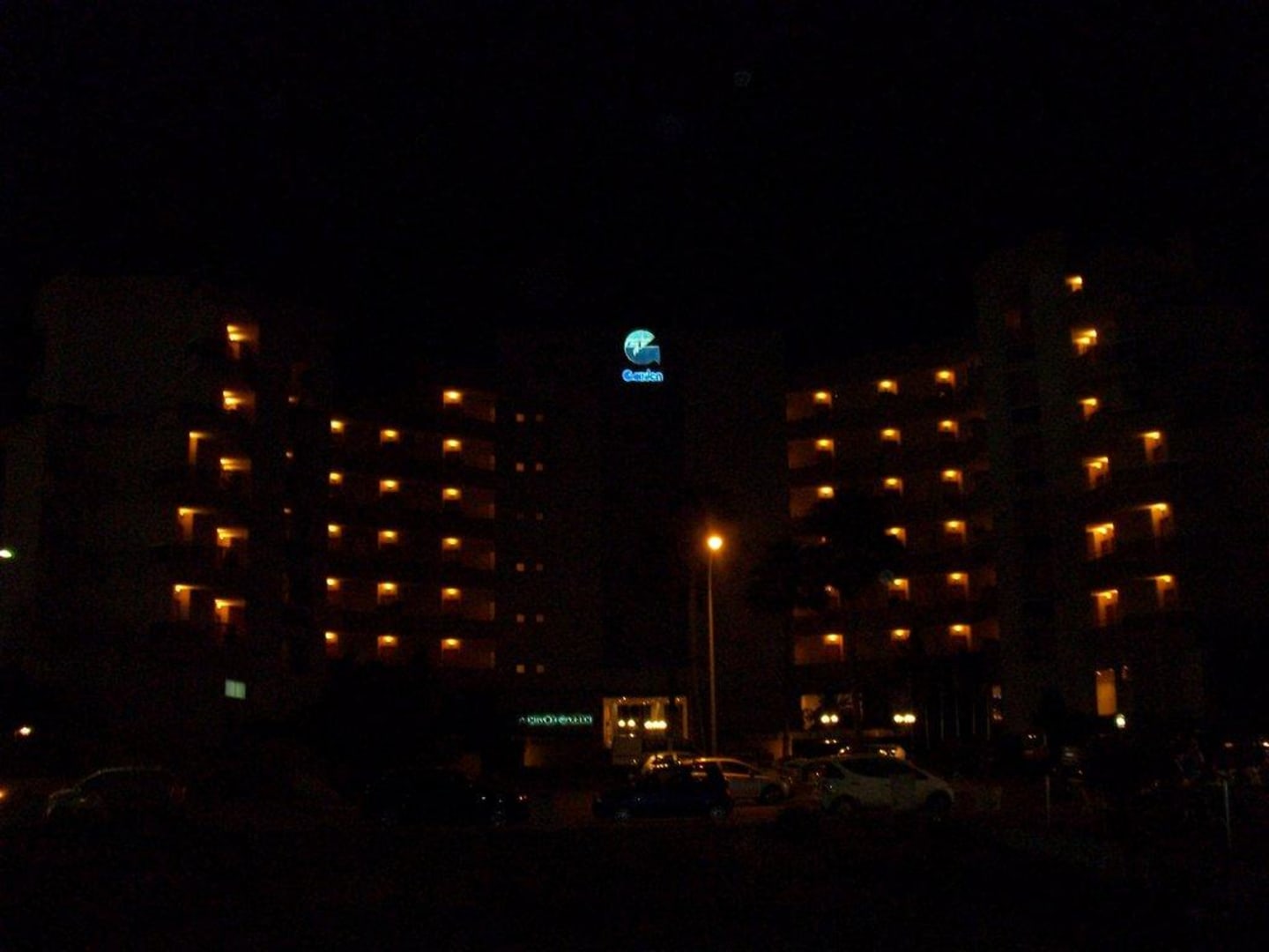 Hotel von vorn bei Nacht