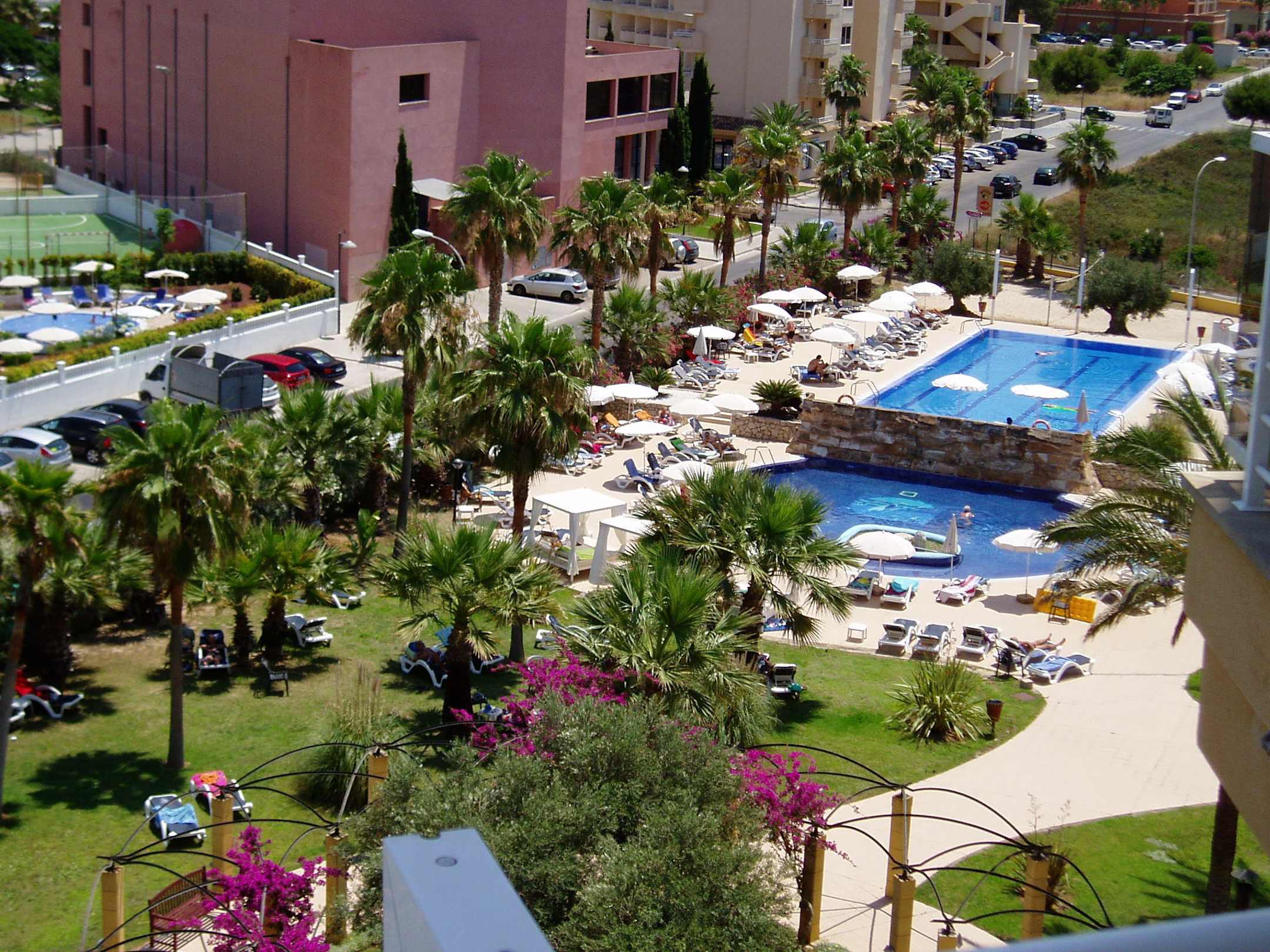 Blick zum Garten + Pools