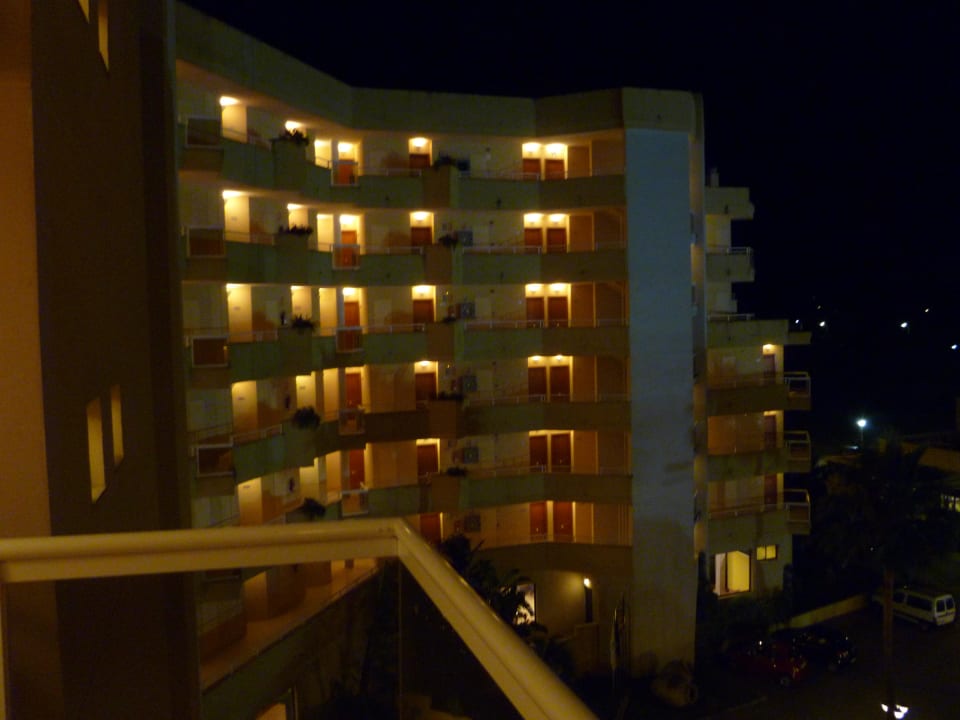 Abendansicht der 6 Wohnetagen mit den Zimmerzugäng