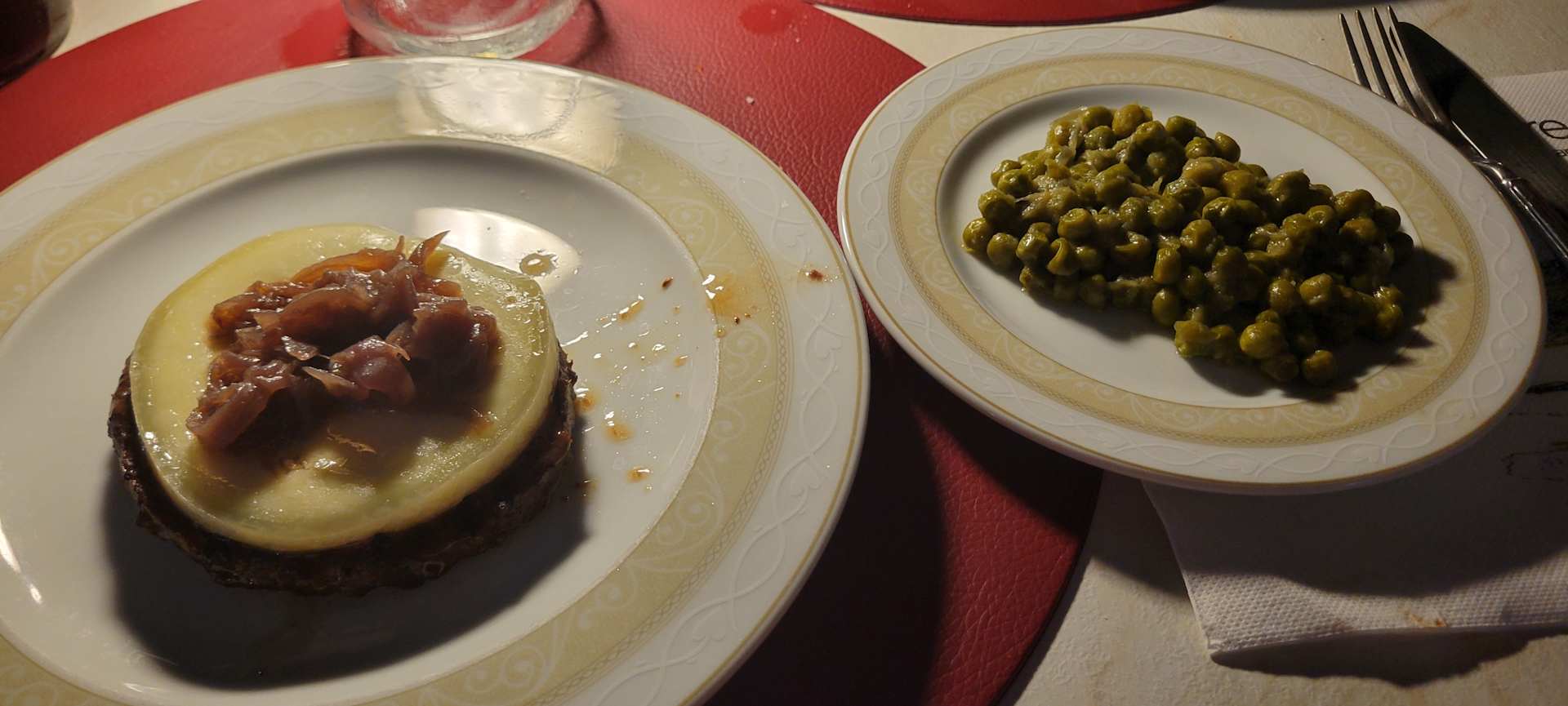Hauptgang Cheeseburger, Beilage Erbsensalat