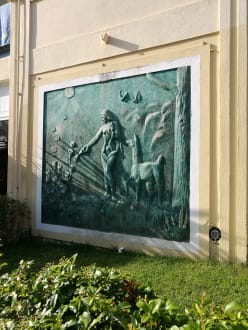 Skulptur am Hotel-Wand